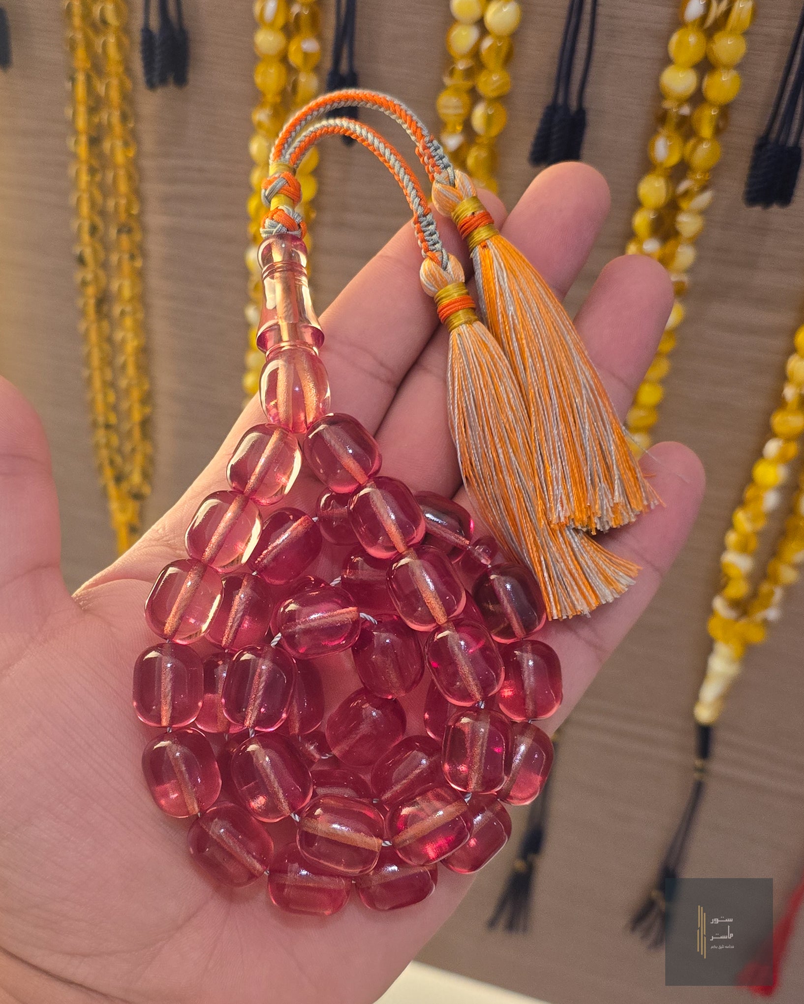 📿 مسباح زعفراني شفاف عسلي مائي صندوقي جامبو